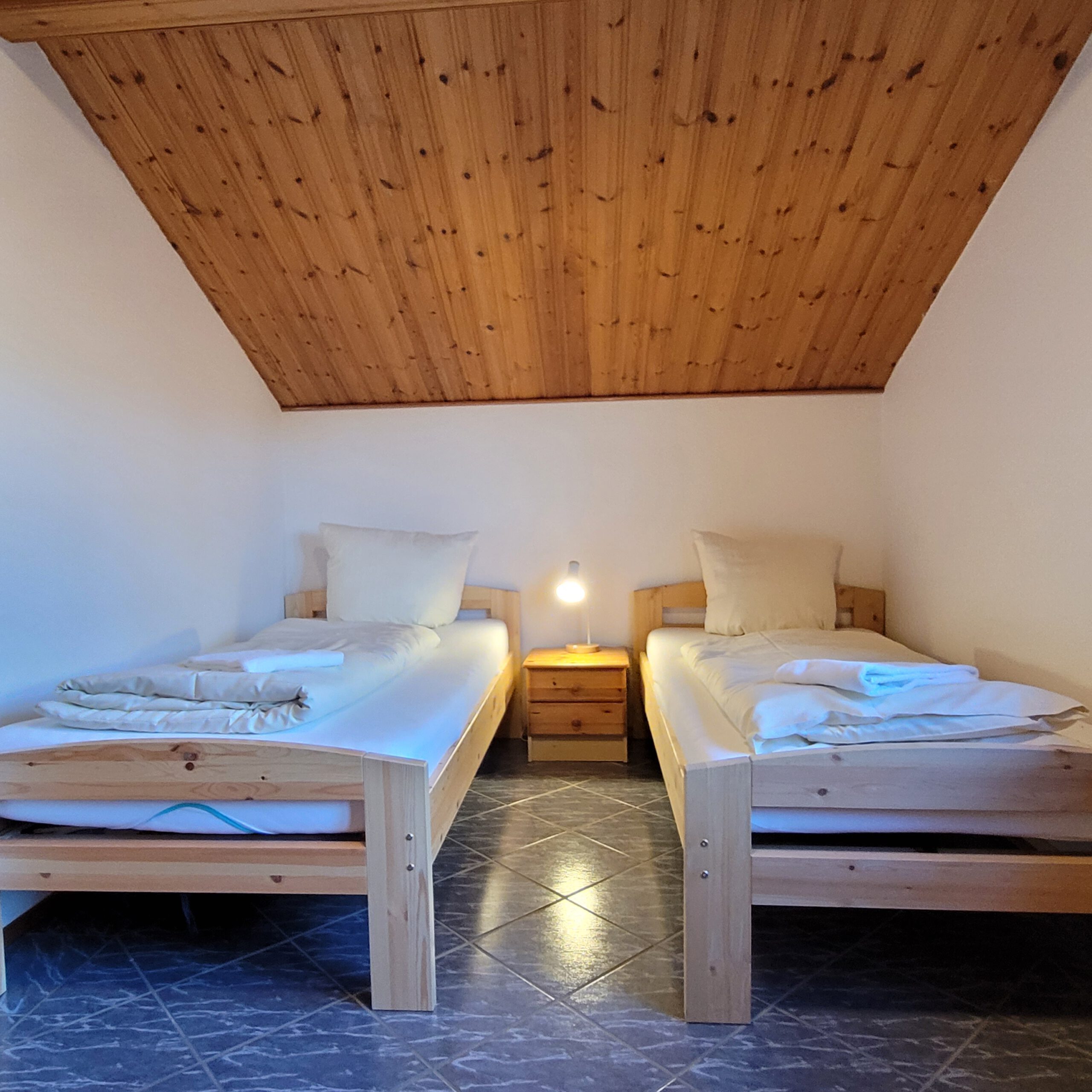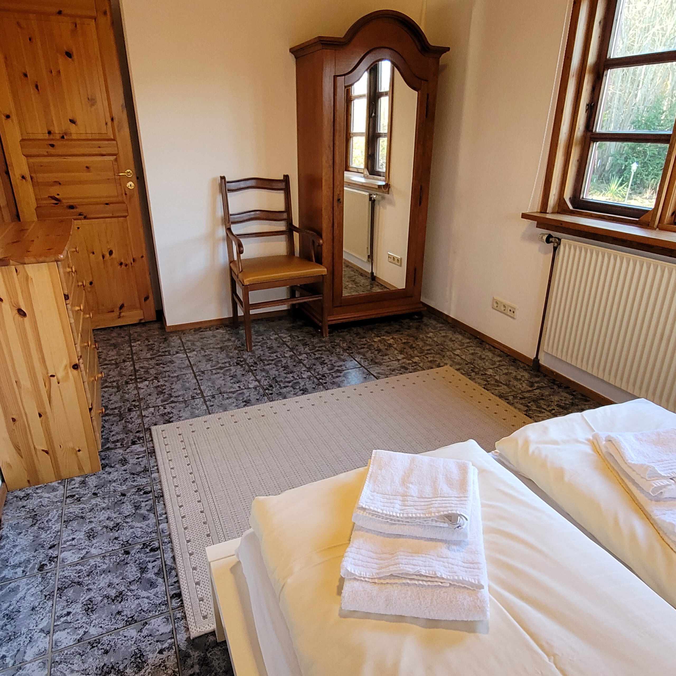 Im ersten Schlafzimmer befinden sich zwei Einzelbetten (je 100×200 cm) . Das zweiten Schlafzimmer ist mit einem Doppelbett (140×200 cm) ausgestattet.